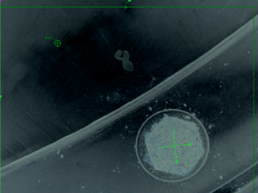 Figure 5 illustrates an image taken by the camera with an optical density filter. As reflected by the image, the optical density filter makes the bolt pop out of the image and is easily identifiable by the camera. The green cross represents the center pixel coordinates of the bolt detected by the neural network.